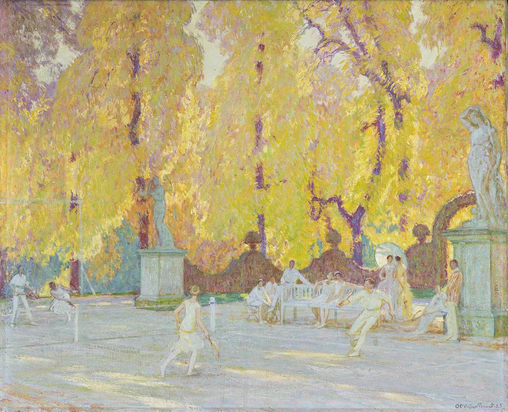 Le parcours se déroule de façon chronologique, de 1870 à 1930. Pourquoi avoir choisi cette période plus qu’une autre me direz-vous ? Tout simplement parce que c’est durant ces années que le sport s’est popularisé en Europe. Il a été un thème moderne intéressant et fascinant pour les artistes que ce soit au bord de l’eau (régates, aviron, canotage, natation) , ceux plus élitistes (escrime, tennis, équitation) ou très populaires (football, rugby, boxe, lutte, la course, le cyclisme)