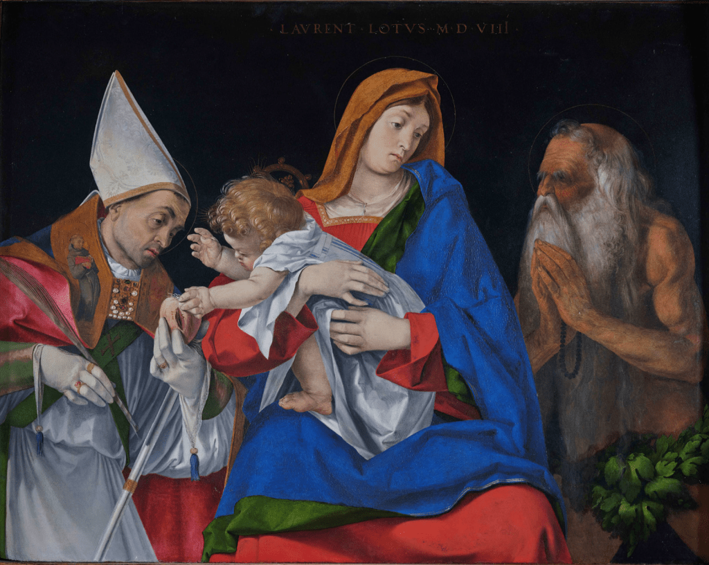 » Vierge à l’enfant avec les saints Ignace d’Antoche et Onuphre  » 1508 – Lorenzo LOTT O