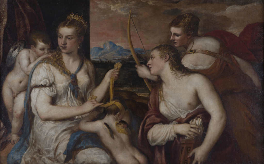 » Vénus bandant les yeux de l’Amour  » 1565 env. TITIEN