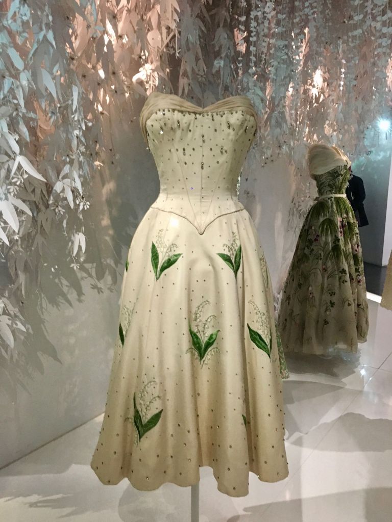 Le muguet était la fleur préférée de Christian Dior. Il en portait souvent un brin à la boutonnière. Compte tenu qu’il était triste de ne pouvoir en profiter aussi souvent qu’il le souhaitait, sa fleuriste préférée, une certaine Madame Dedeban, avait imaginé une serre chauffée pour pouvoir en faire pousser toute l’année spécialement pour lui. Il en a fait l’emblème de sa Maison de couture, et en offrait, tous les Ier mai, à ses couturières et clientes. Certaines de ses robes seront confectionnées dans des tissus imprimés de brins de muguet. Une collection complète fut même consacrée à cette fleur en 1954. L’histoire raconte qu’il demandait même qu’il en soit glissé un brin dans l’ourlet des robes afin de porter bonheur à la collection.