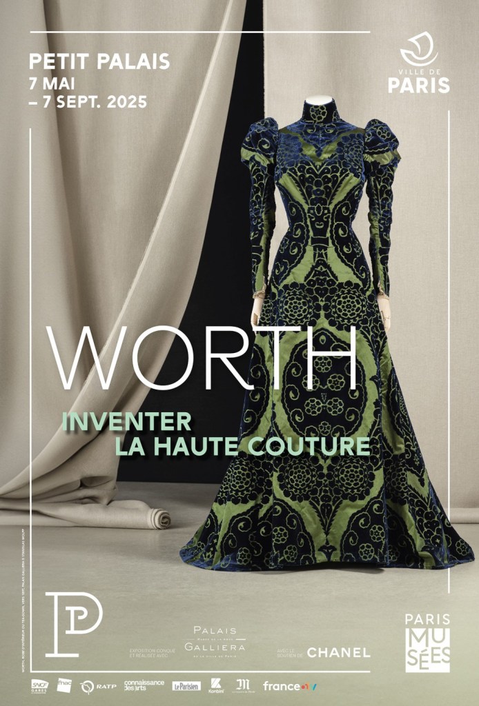 Elle s’intitule WORTH-Inventer la haute couture / Jusqu’au 7 septembre 2025 – On peut y admirer 400 œuvres, robes de jour, du soir, grand-soir, de Cour, de thé (tea-gown) , manteaux, parfums, costumes, peintures, objets, accessoires, arts décoratifs et graphiques, sculptures, estampes, dans une chronologie qui va du Second Empire à l’entre deux-guerres. Une partie des vêtements prêtés a fait l’objet d’une restauration. Ce sont, plus la plupart, des œuvres rares et fragiles qui ne feront plus l’objet d’une quelconque exposition après celle-ci. Elles retourneront dans leur écrin d’origine.