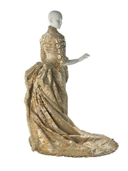 En 1870 il bouleverse la mode en remplaçant l’imposante crinoline d’autrefois, par un petit coussinet mis sous la robe au niveau du postérieur , appelé tournure. Tout le volume de la robe est alors reporté sur l’arrière. On peut alors y rajouter encore plus de tissu, de rubans, des traines plus longues, des nœuds, et agrémenter le tout de passementeries diverses et variées. Worth travaillera avec les soieries lyonnaises les plus réputées.