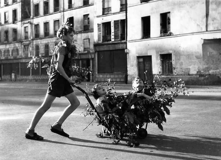 Libération de Paris – Les enfants jouent aux camions allemands – 1944 – Robert DOISNEAU