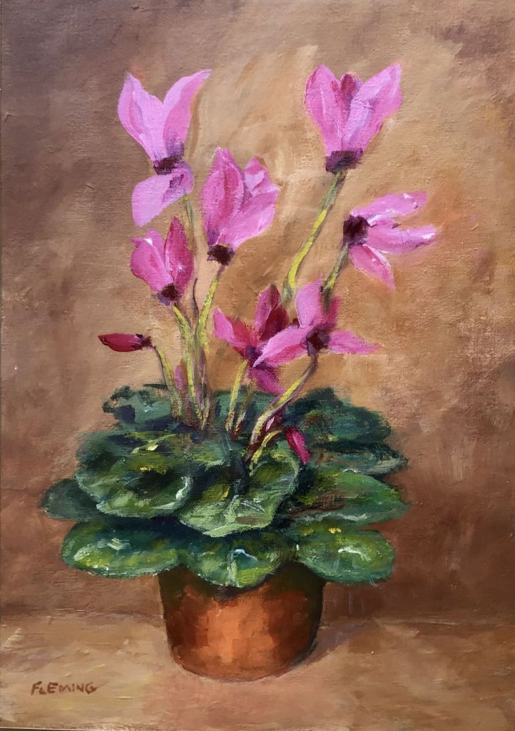 Au mois d’octobre on voit l’éclosion des cyclamens, avec leurs belles fleurs dans les tons de rose-fuschia, blanc, rouge ou mauve et leurs feuilles d’un vert bien soutenu, veinées de blanc – Ce sont des plantes qui appartiennent à la famille des Primulacées. On pourrait penser qu’elles sont fragiles et délicates , mais il ne faut pas se fier aux apparences ! Elles sont résistantes et tiennent jusqu’au printemps. Celles que l’on trouve chez les fleuristes de nos jours sont les cyclamen persicum que les romains cultivaient déjà.