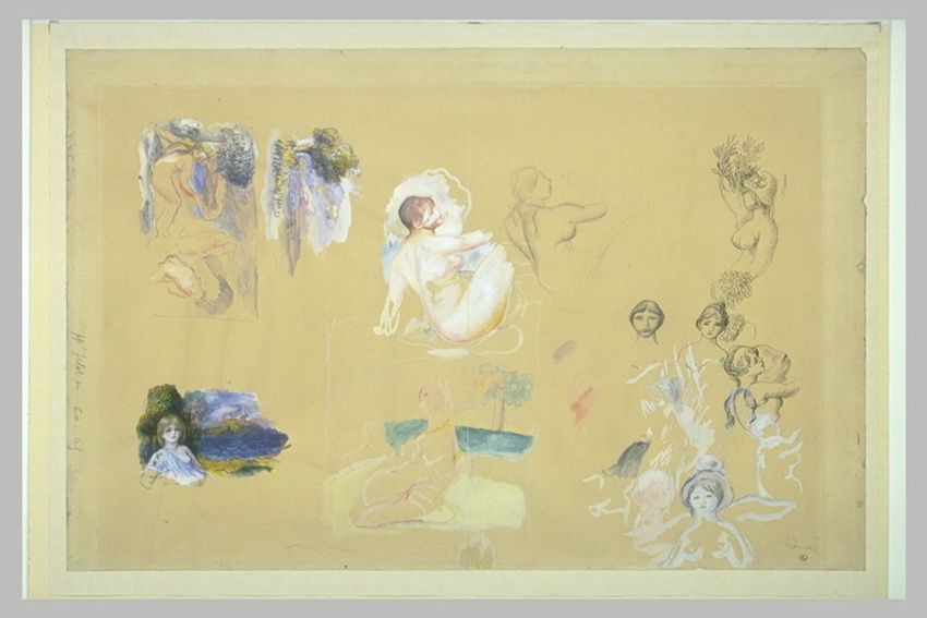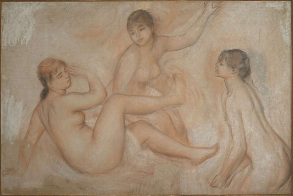 » Renoir, contrairement à tous ses camarades du groupe impressionniste, a été le seul qui a suivi l’enseignement de l’École impériale des Beaux-Arts. Enseignement qui a été essentiellement fondé sur le dessin. On n’enseignait pas la peinture à l’École des Beaux-Arts. Donc Renoir a eu une très forte formation de dessin. Ses dessins sont exceptionnels parce que d’une échelle identique à ses tableaux. Cela n’est pas une pratique que l’on retrouve chez ses autres camarades , et différentes d’ailleurs de la pratique de ses contemporains qui utilisent la mise au carreau. Renoir ne semble l’avoir utilisé, et au contraire, d’ailleurs, on croit savoir par différents témoignages, qu’il utilisait des calques. » Anne DISTEL co-commissaire de l’expo.